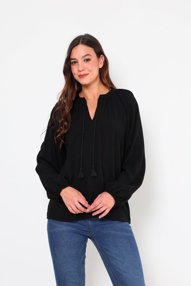 Esta blusa elegante es la elección perfecta para cualquier ocasión. Con un diseño atemporal que combina comodidad y estilo, presenta un cuello con cordón y mangas voluminosas que aportan un aire sofisticado. Ideal para llevar tanto en el trabajo como en una salida casual, esta blusa es versátil y fácil de combinar.