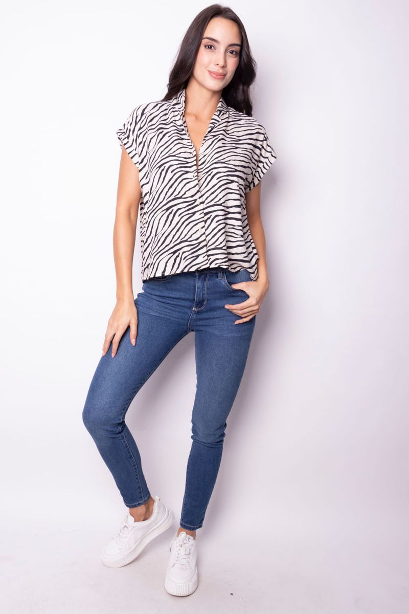 Esta blusa de línea fresca presenta un patrón de cebra que aporta un toque moderno a cualquier outfit. Con su diseño de mangas cortas y tejido ligero, es perfecta para días cálidos o para crear capas en looks de temporada. Su corte cómodo te permitirá moverte con facilidad, perfecta para cualquier ocasión, desde una salida casual hasta un día en la oficina.