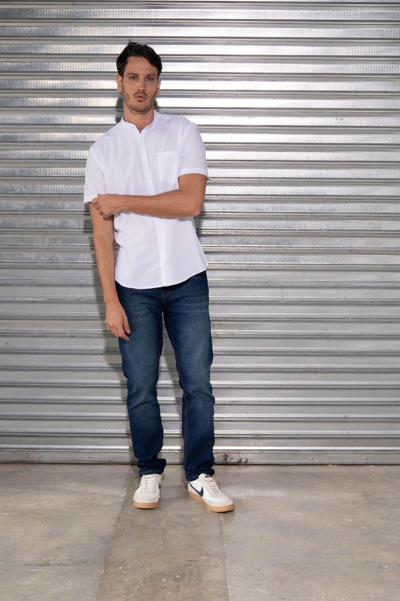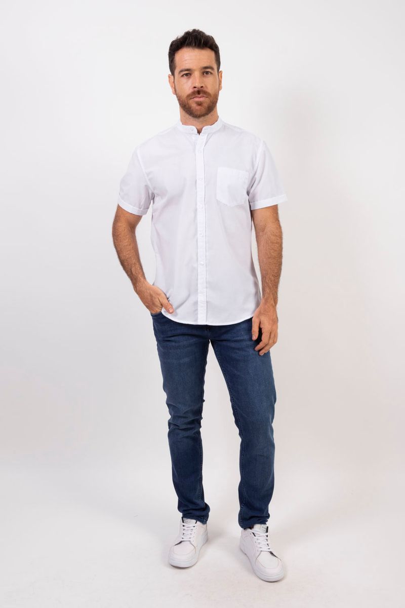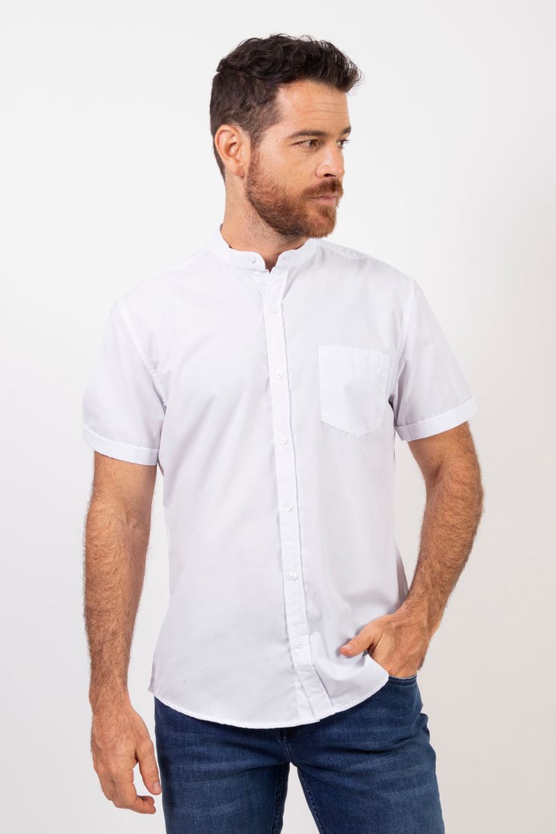 Camisa Manga Corta Essential Cuello Nerú en Popelina