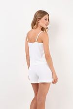 Descubre la comodidad y estilo de nuestro conjunto de pijama ligero. Diseñado para ofrecer una sensación fresca y suave, cuenta con tirantes ajustables y un pantalón corto con cintura elástica. Perfecto para noches relajadas y agradables, este conjunto combina elegancia con funcionalidad, permitiéndote descansar con estilo.