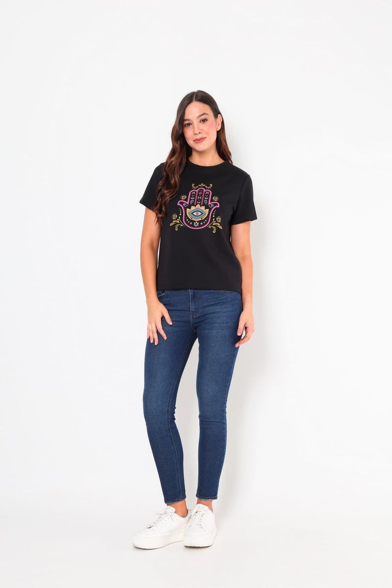 Este T-Shirt Hamsa es la prenda ideal para quienes buscan una fusión de estilo y significado. Con un diseño exclusivo y colorido que destaca la famosa mano de Hamsa, cada camiseta está fabricada con algodón suave para brindar comodidad en cualquier ocasión. Perfecto para un look casual o un día de descanso, este t-shirt se convierte en un básico que habla de ti. ¡Exprésate y lleva tu estilo a otro nivel!