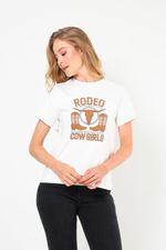 Con nuestra T-Shirt Rodeo, disfruta de la comodidad y un diseño único que celebra la cultura vaquera. Perfecta para días informales y ocasiones festivas, esta camiseta combina calidad y estilo para resaltar tu personalidad. Hecha con material suave y duradero, te mantendrá cómoda mientras muestras tu espíritu aventurero.