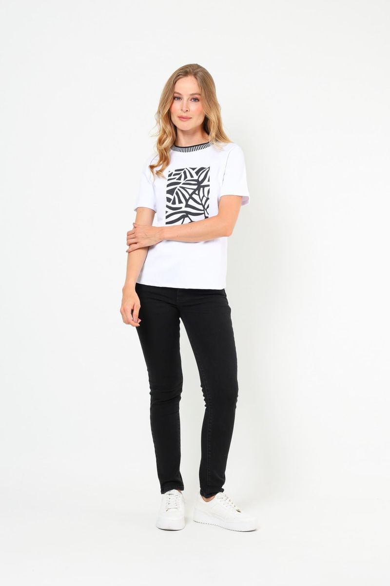 Esta t-shirt estampada combina comodidad y estilo. Con un diseño gráfico contemporáneo, es perfecta para cualquier ocasión y fácil de combinar con tus jeans favoritos. Confeccionada con materiales suaves y transpirables, ofrece un ajuste ideal para un look relajado y moderno.