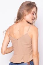 Descubre nuestro exclusivo Top Peplum, diseñado para ofrecerte comodidad y estilo en cada ocasión. Con un detalle de volantes en la parte inferior y tirantes delgados, este top es perfecto para combinar con tus jeans favoritos o una falda elegante. Fabricado con material suave y ligero, te permitirá disfrutar del día con frescura. Ideal para salidas informales o eventos especiales, ¡no te quedes sin el tuyo!