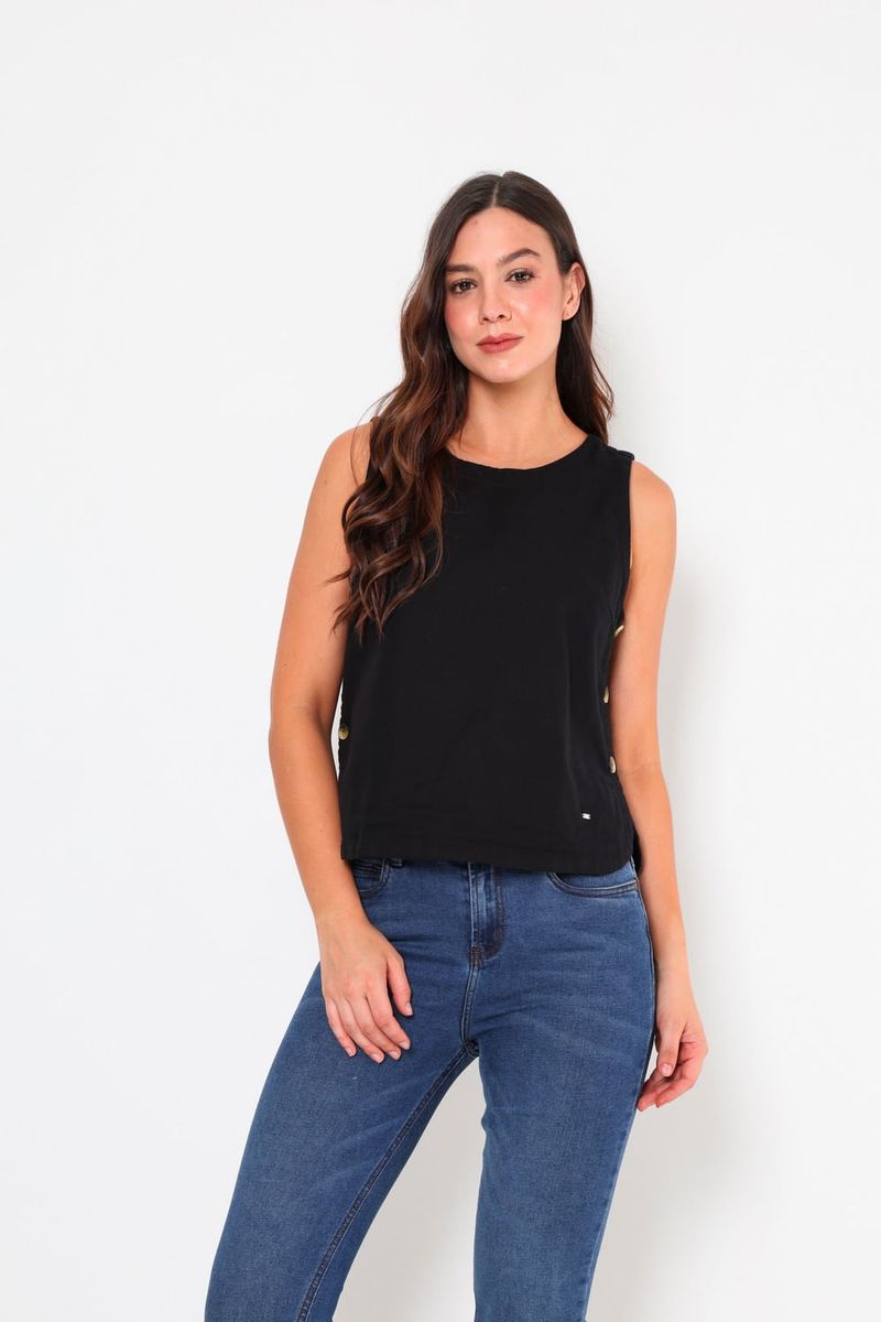 Este top básico es una prenda esencial para cualquier guardarropa. Con un diseño de corte limpio y moderno, es perfecto para una variedad de ocasiones, desde casuales hasta un día de trabajo. Su confección en tela suave garantiza comodidad durante todo el día, mientras que su versatilidad te permite combinarlo con cualquier prenda, ya sea una falda, jeans o pantalones cortos. ¿Buscas un look fresco y estilizado? Este es el top ideal para ti.