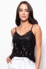 Este exclusivo top brillante es perfecto para cualquier ocasión especial. Confeccionado en un material suave y ligero, presenta un diseño con detalles de lentejuelas que aportan un toque glamuroso. Ideal para combinar con faldas o pantalones ajustados, este top te hará destacar en cualquier evento. Siente la comodidad y el estilo en cada movimiento.