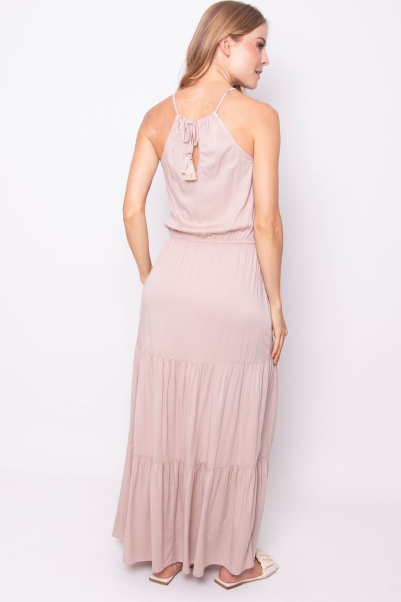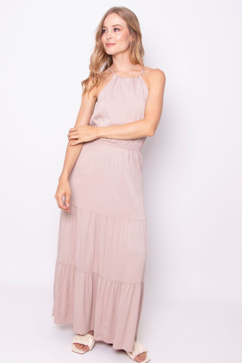 Este vestido maxi es una pieza versátil y elegante, ideal para cualquier ocasión. Con un diseño ligero y fluidamente cómodo, presenta un escote halter y una cintura elástica que realza tu figura. Además, cuenta con prácticos bolsillos, lo que lo convierte en la elección perfecta para el día a día o para eventos especiales. ¡Atrévete a lucir espectacular!